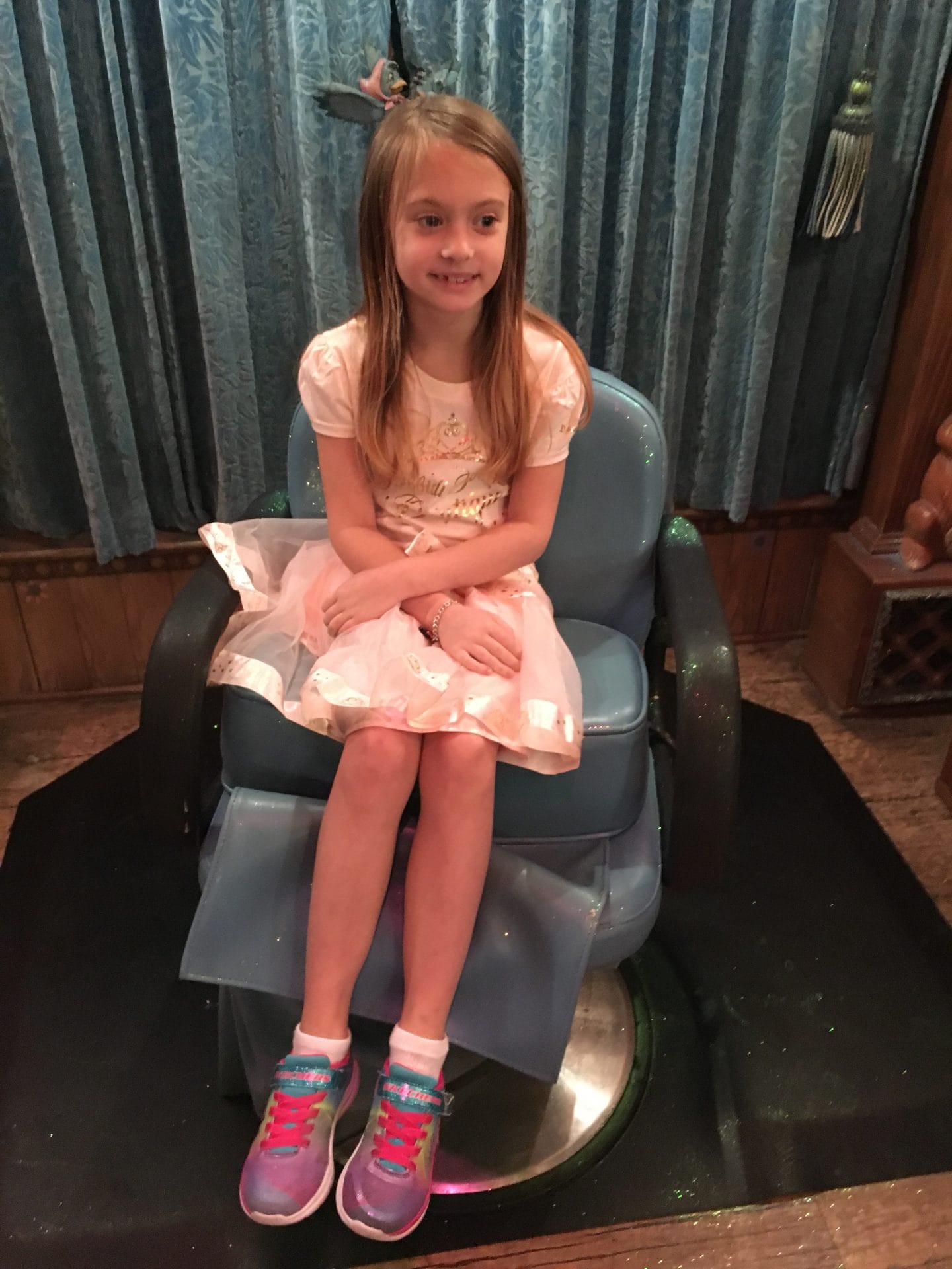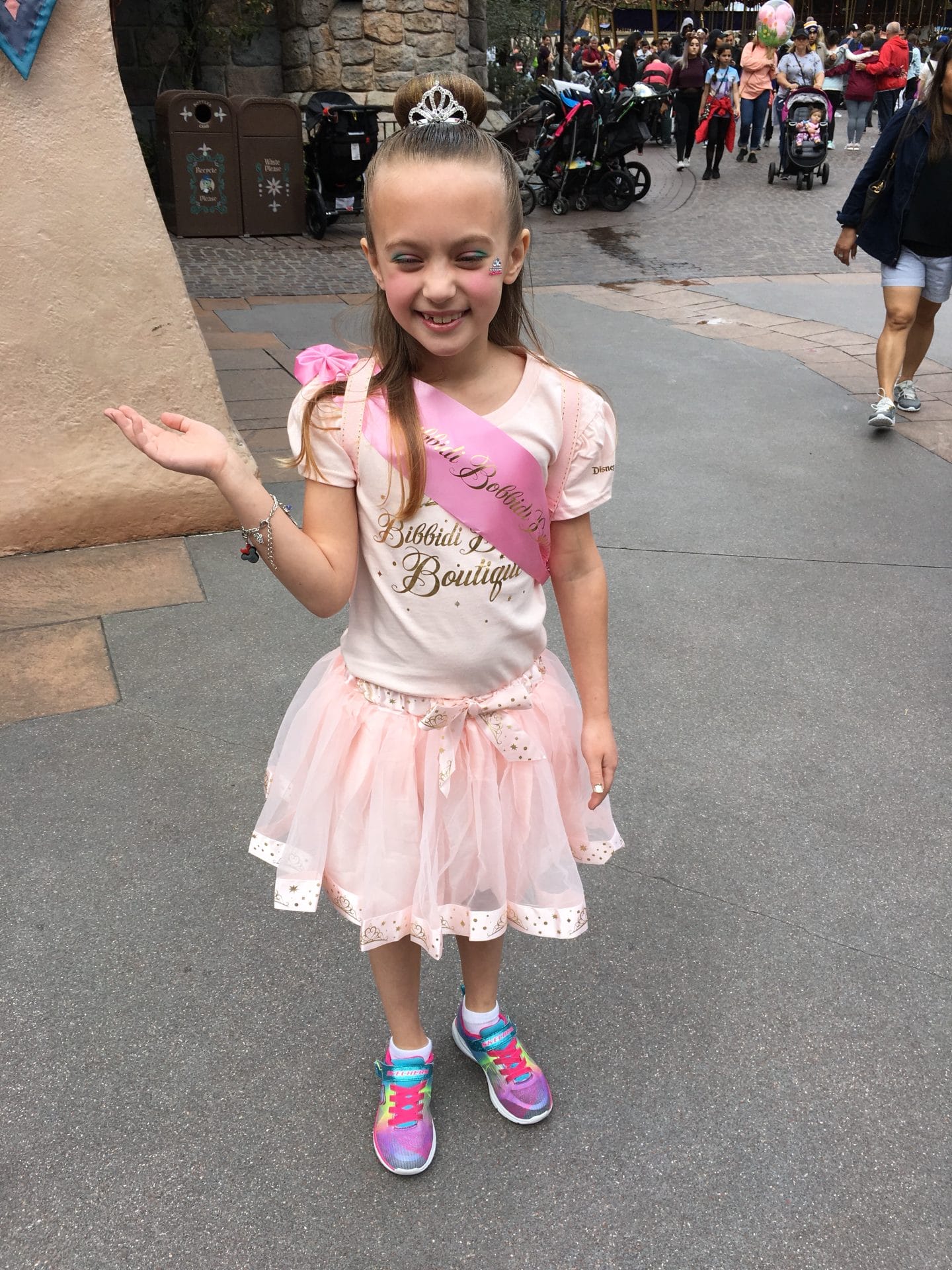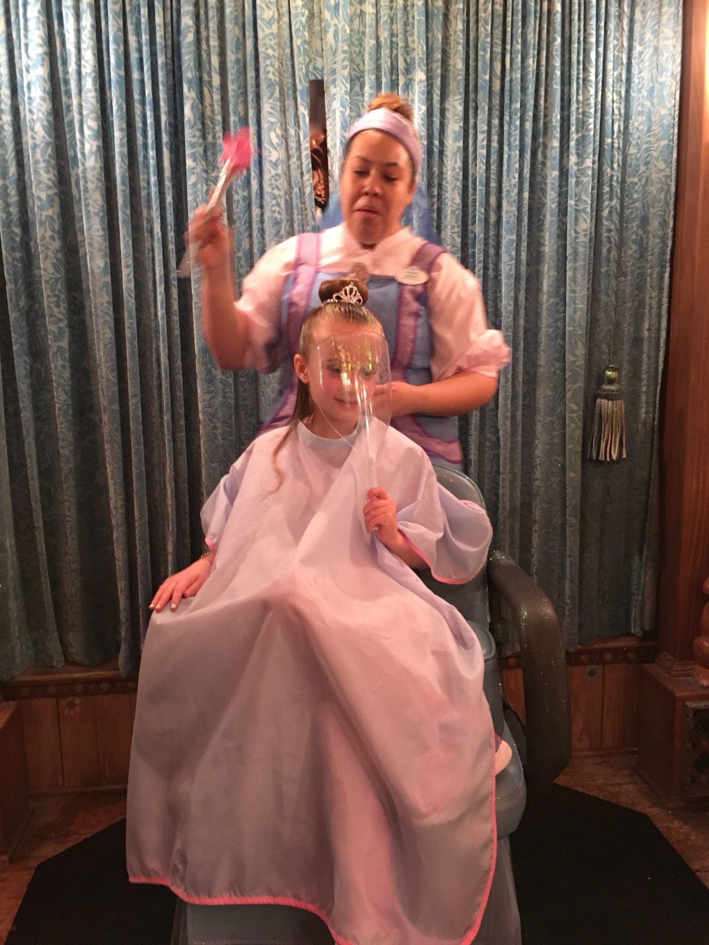 I got to get all fancy at the Bibbidi Bobbidi Boutique! They did my hair & makeup & nails – and I met my fairy godmother.