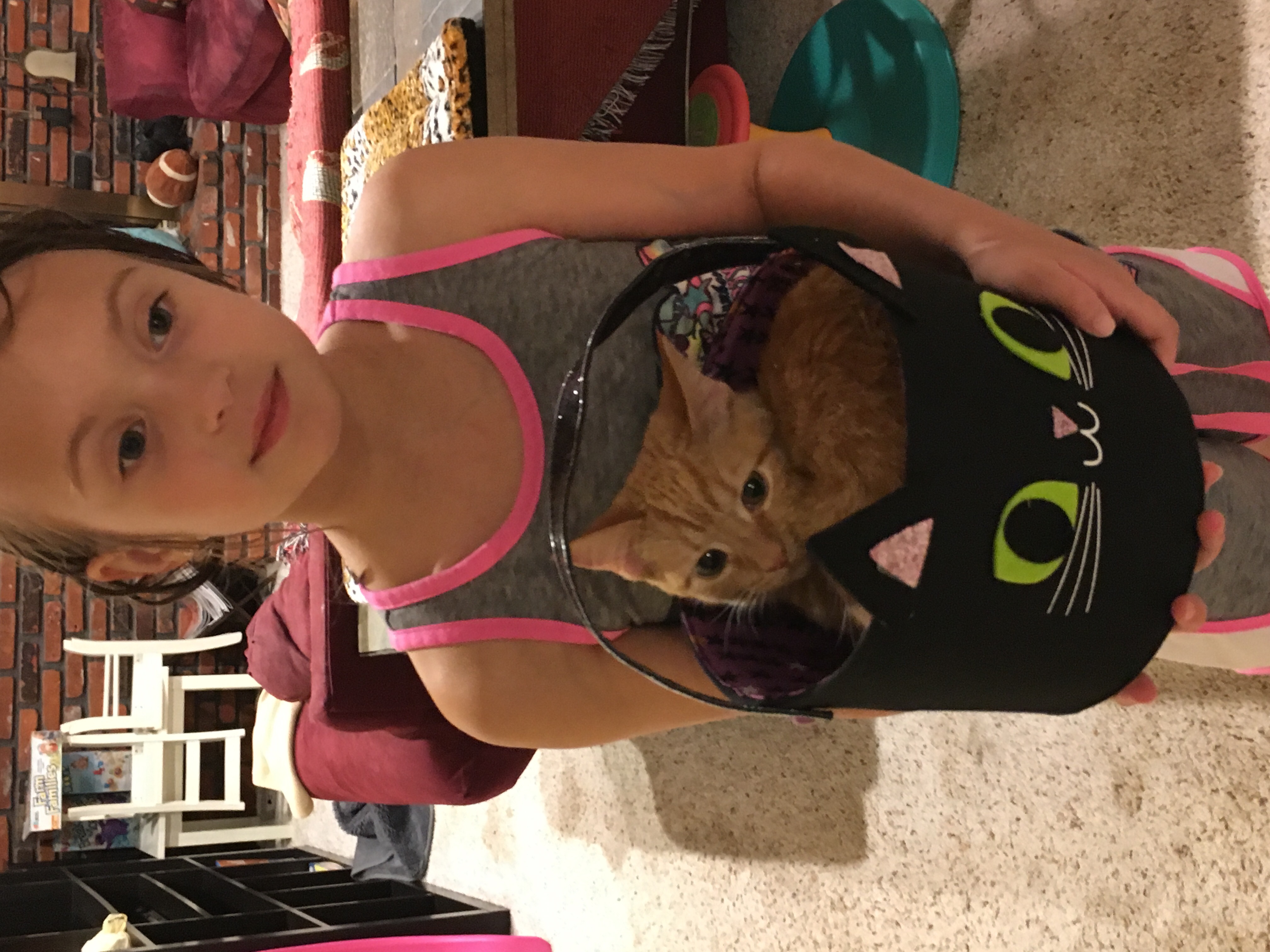 One of the orange kittens climbed in my Halloween basket. I’m still having trouble telling them apart, so I don’t know which one this is – but, whoever it is is awfully cute.