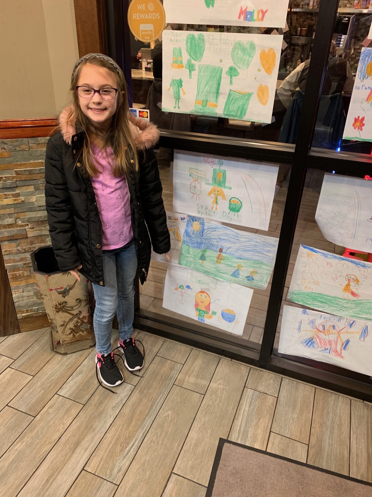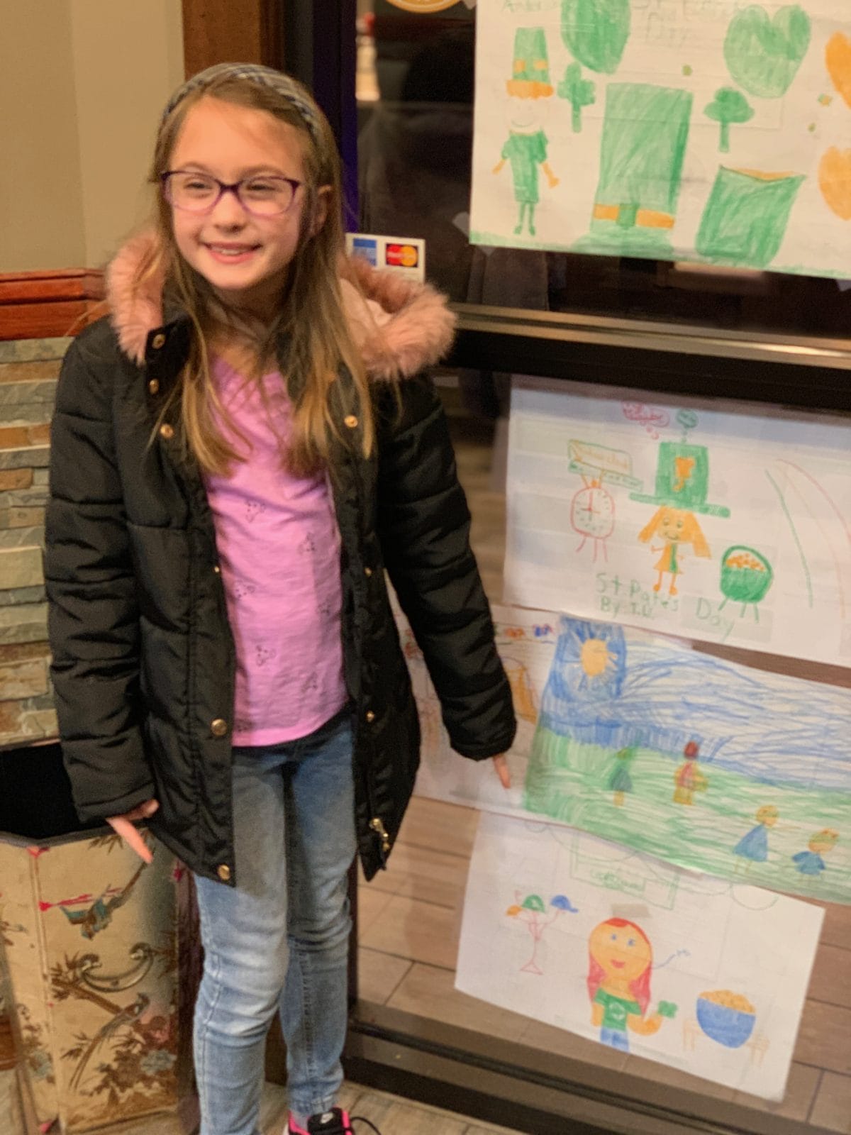 I did a little pre-st patty’s day drawing while out at a dinner. They hung it up in the entry way along with some others. It’s the bottom one by my feet.