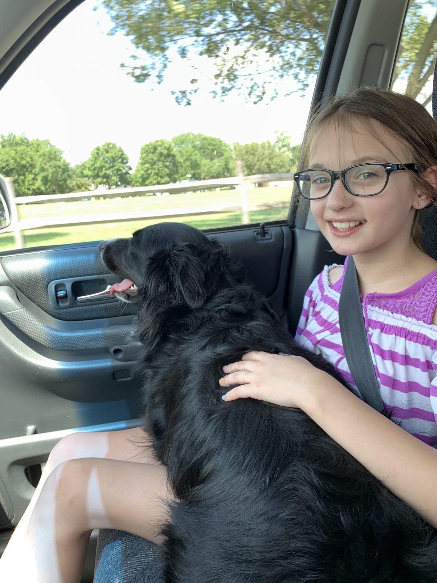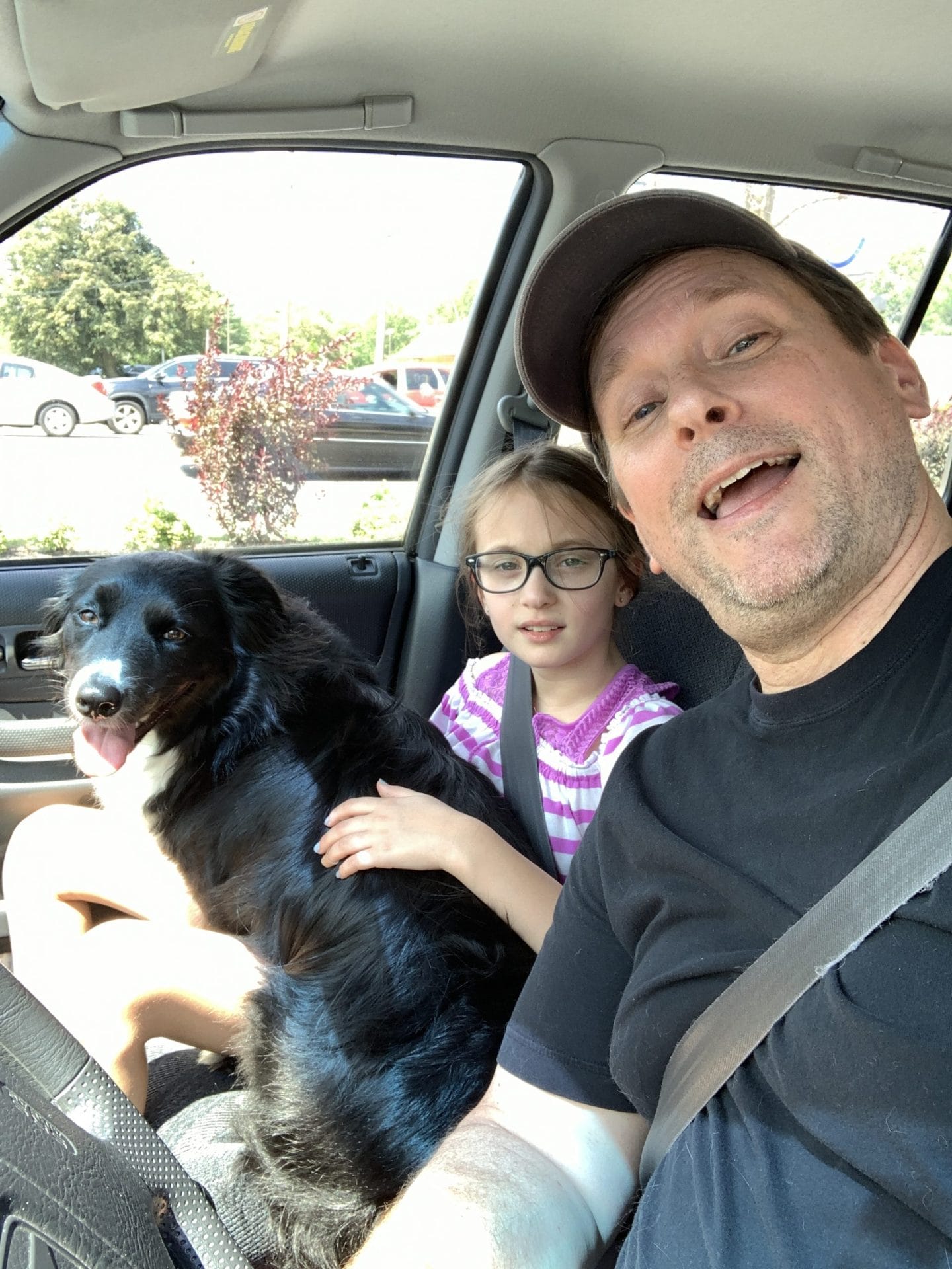 Dad and I are getting Starbucks. And belle came along for the trip.