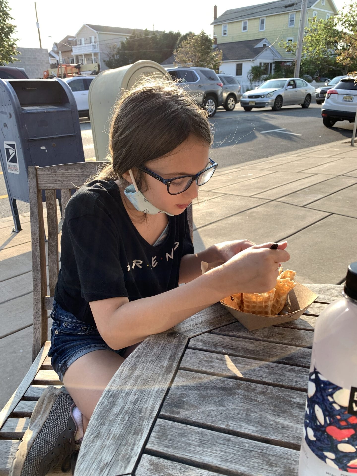 We left the house at noon not having a destination. Then we managed to visit two dog parks, penny-packer park, Haddonfield, the dog beach in Longport, and finally drip and scoop in ocean city. We’re all tired especially belle.