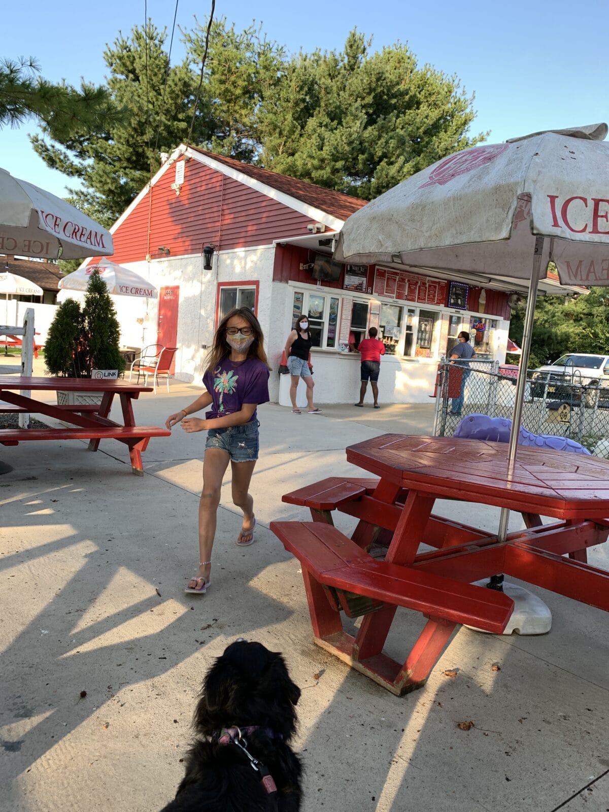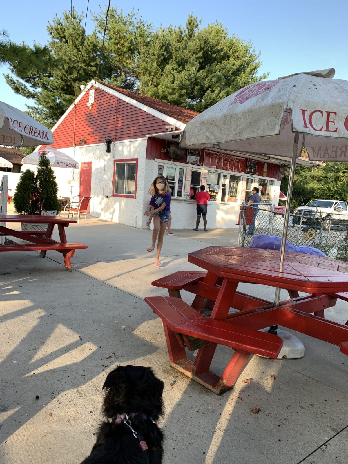 Just a quick family night trip… with Belle… to the local ice cream stand.