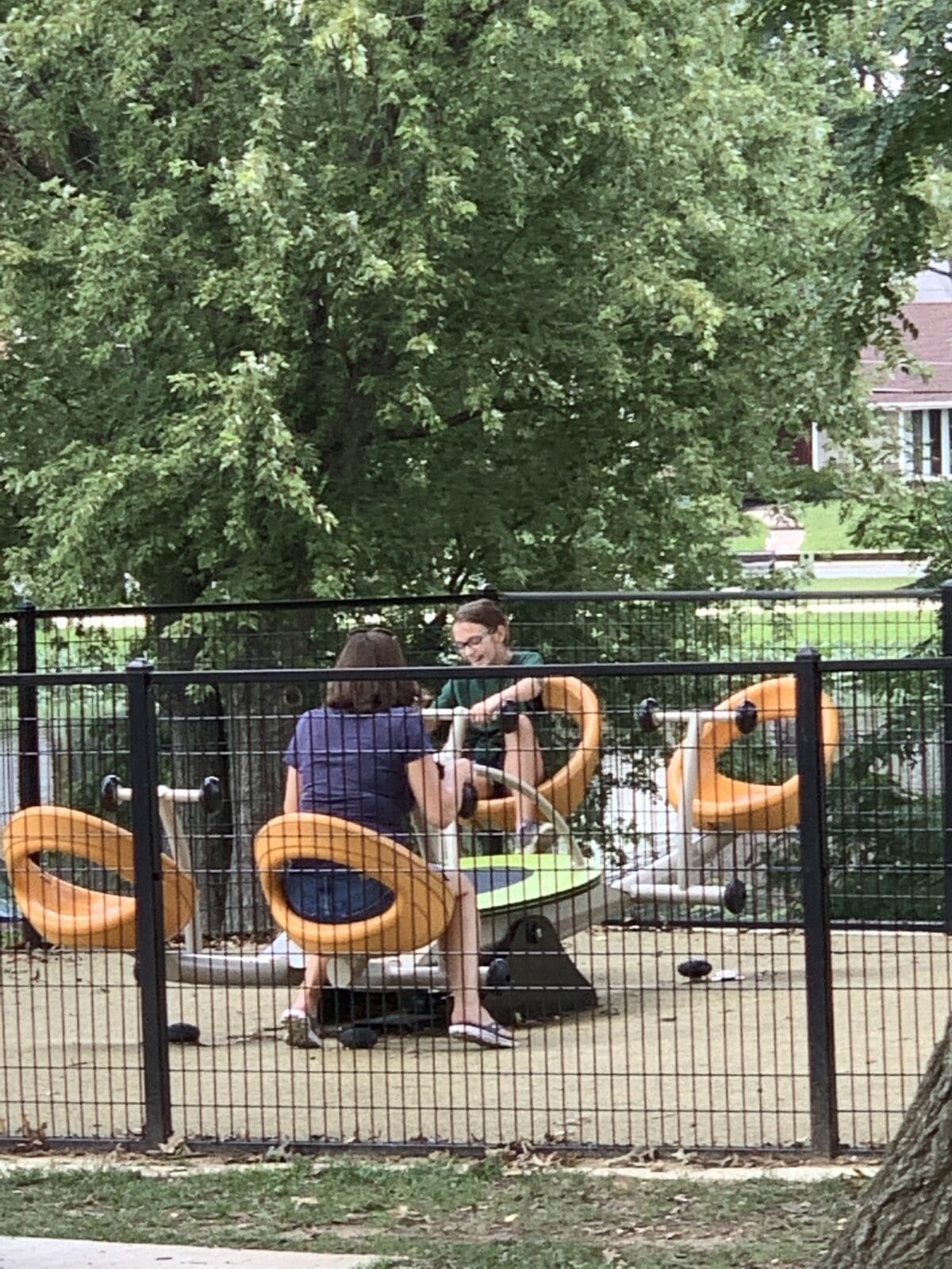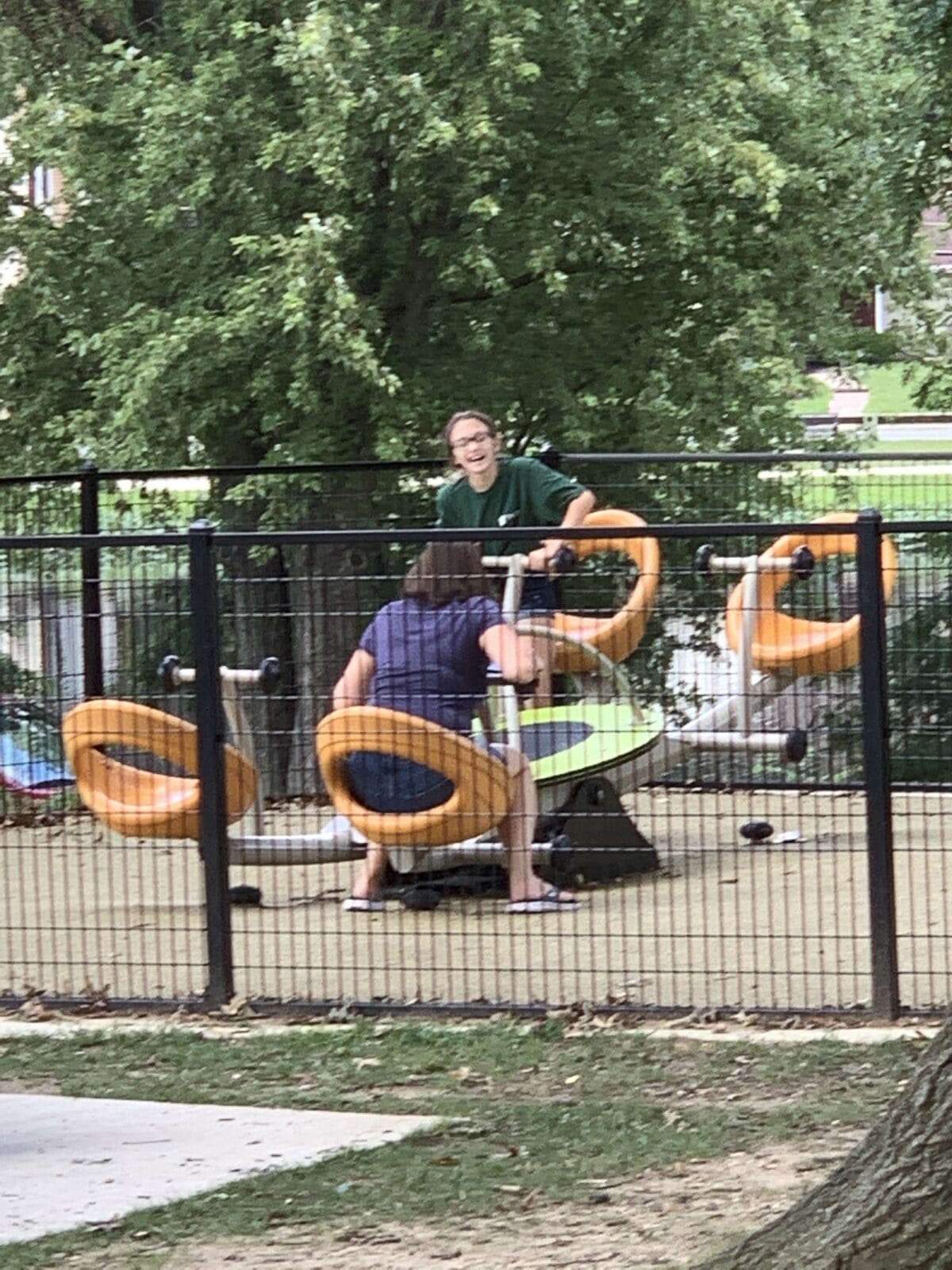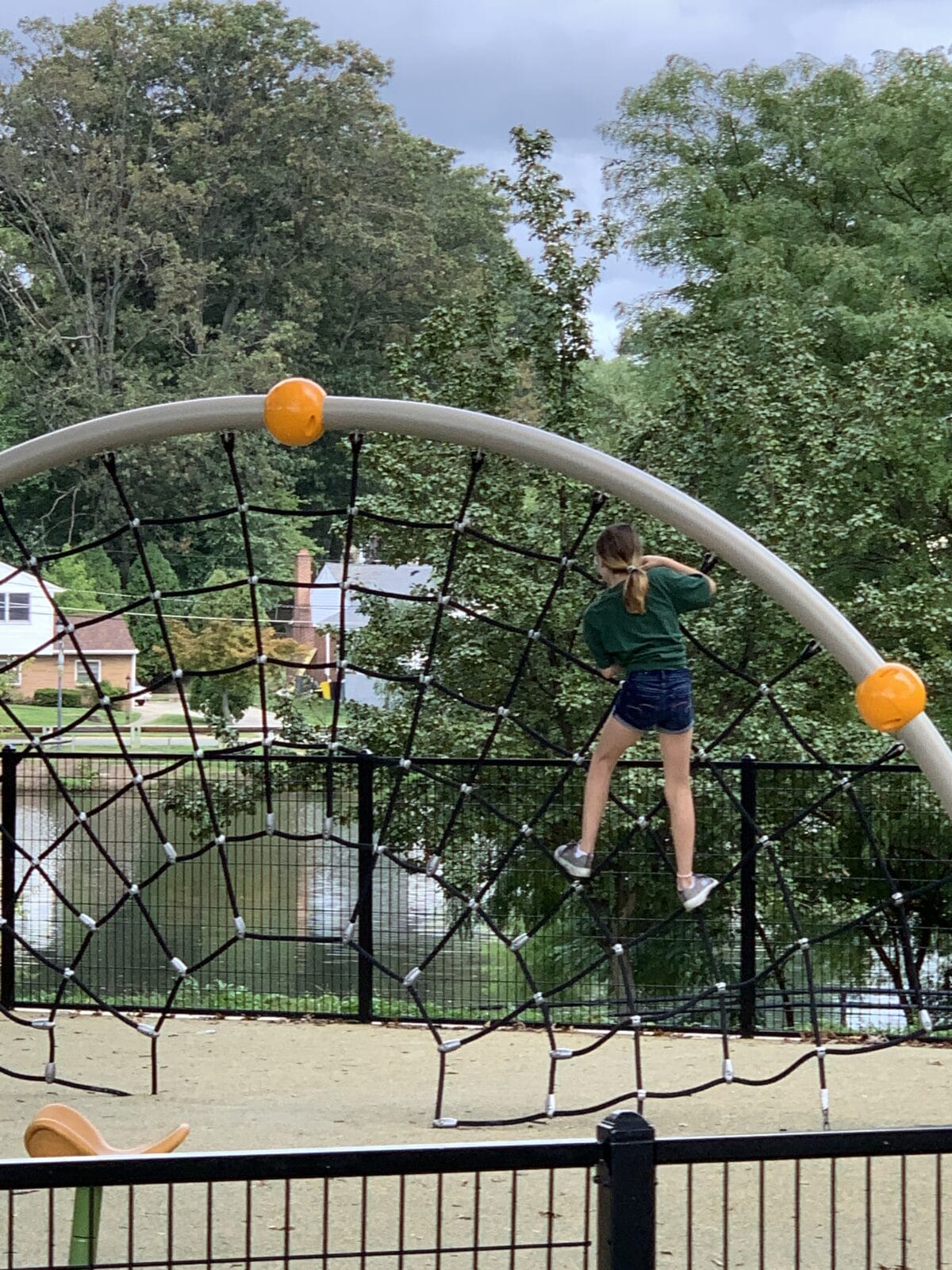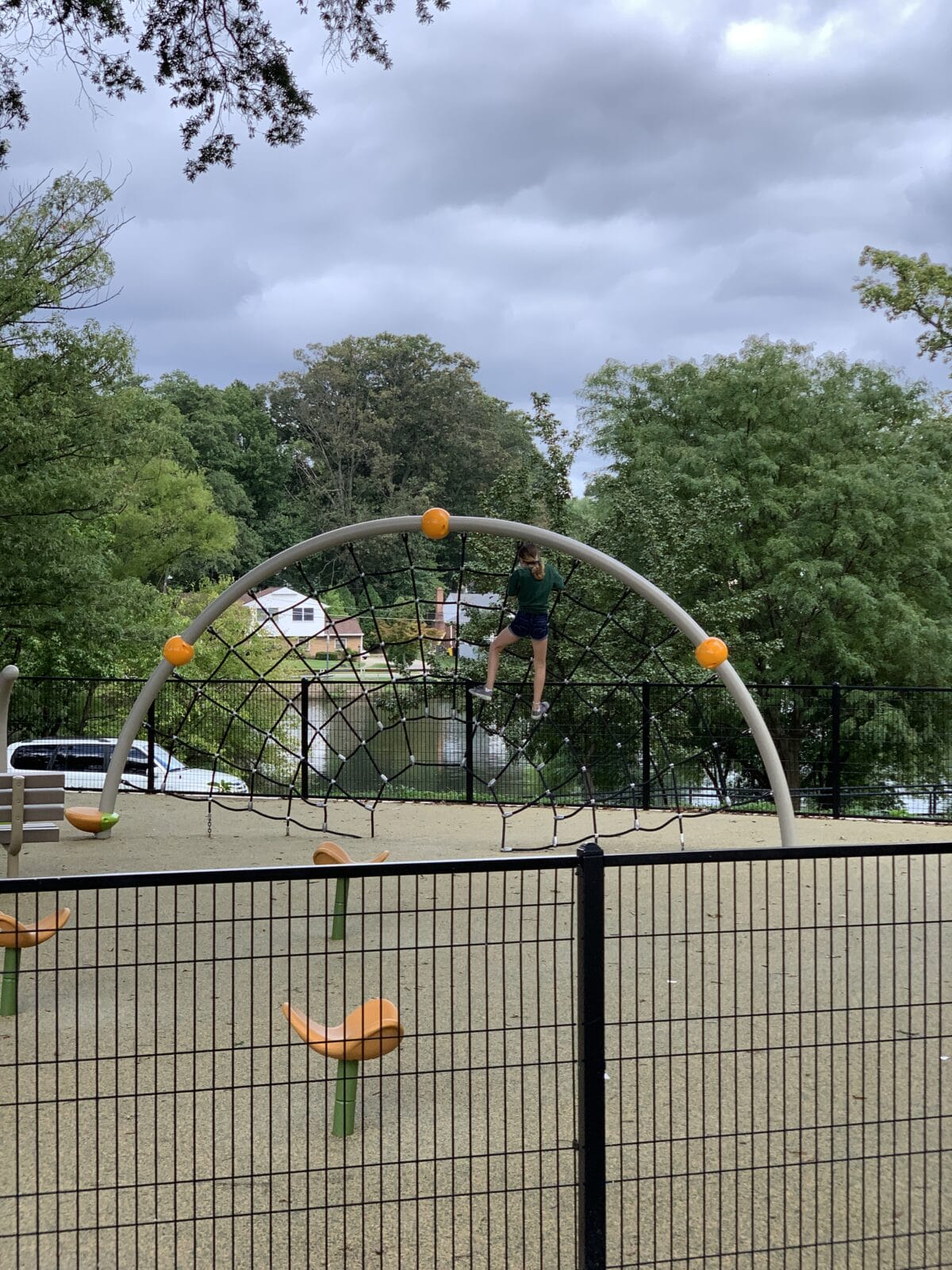 We got a late start… but ended up taking Belle to the dog park. Then we walked around Haddon Heights park. We went to visit the old playground but it’s been renovated and the rolly slide is gone. But they have a lot of new stuff. So I entered kid mode. Hey, it’s a play ground. Don’t judge. Mom joined in too!